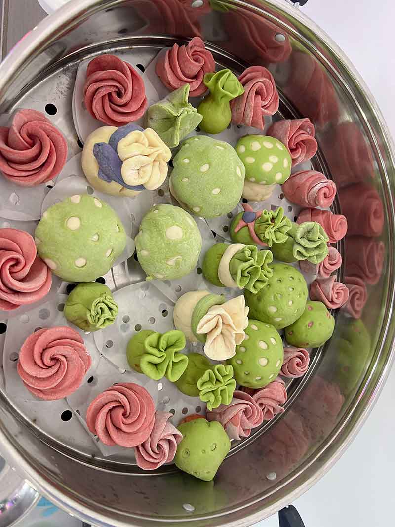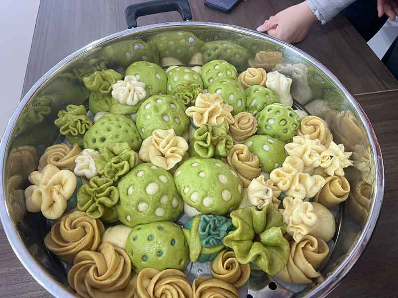 讲师以“理论+实操”模式,手把手教学员和面、发酵、塑形技巧,大家很快掌握多款花馍做法,现场麦香四溢。